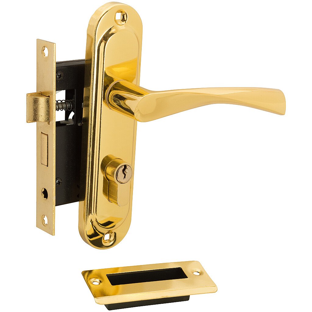 Комплектация: ручки на планке - 1 пара; замок - 1 шт.; ответная планка - 1 шт.; цилиндр ключ/фиксатор (5 ключа) - 1 шт.; крепеж - 1 к-т.