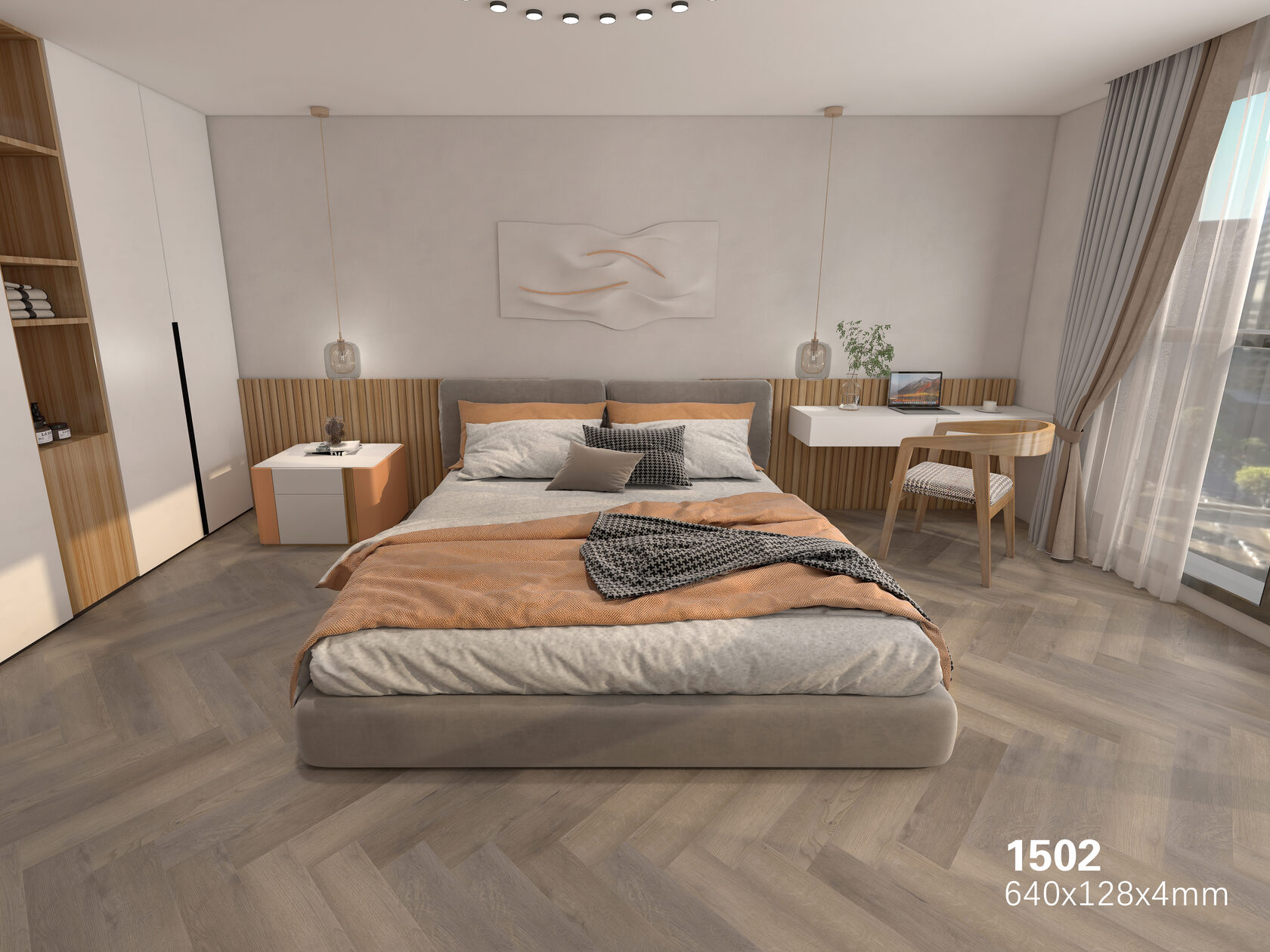 Кварцвиниловое покрытие 1502 Оранжевый цветок