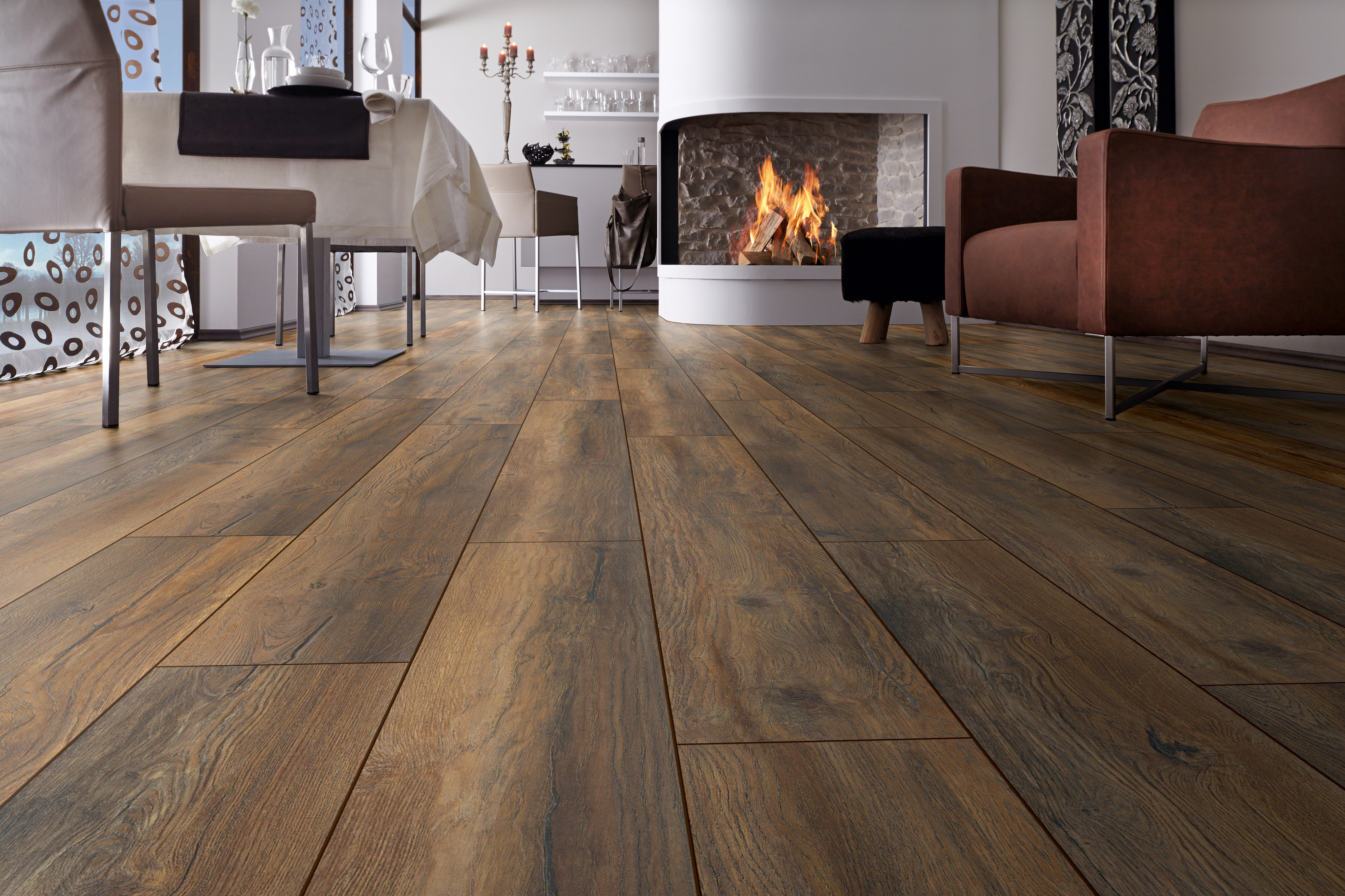 Ламинат Kronotex (Кронотекс) Дуб портовый — выбор для тех, кто ищет прочное напольное покрытие для квартиры или офиса. Класс износостойкости 33 и толщина 12 мм подходят для активной эксплуатации: в прихожей, гостиной или коммерческих помещениях. Темно-коричневый цвет и однополосный рисунок создают эффект массивной доски, а четырехсторонняя фаска формирует аккуратные стыки и придает полу рельеф.