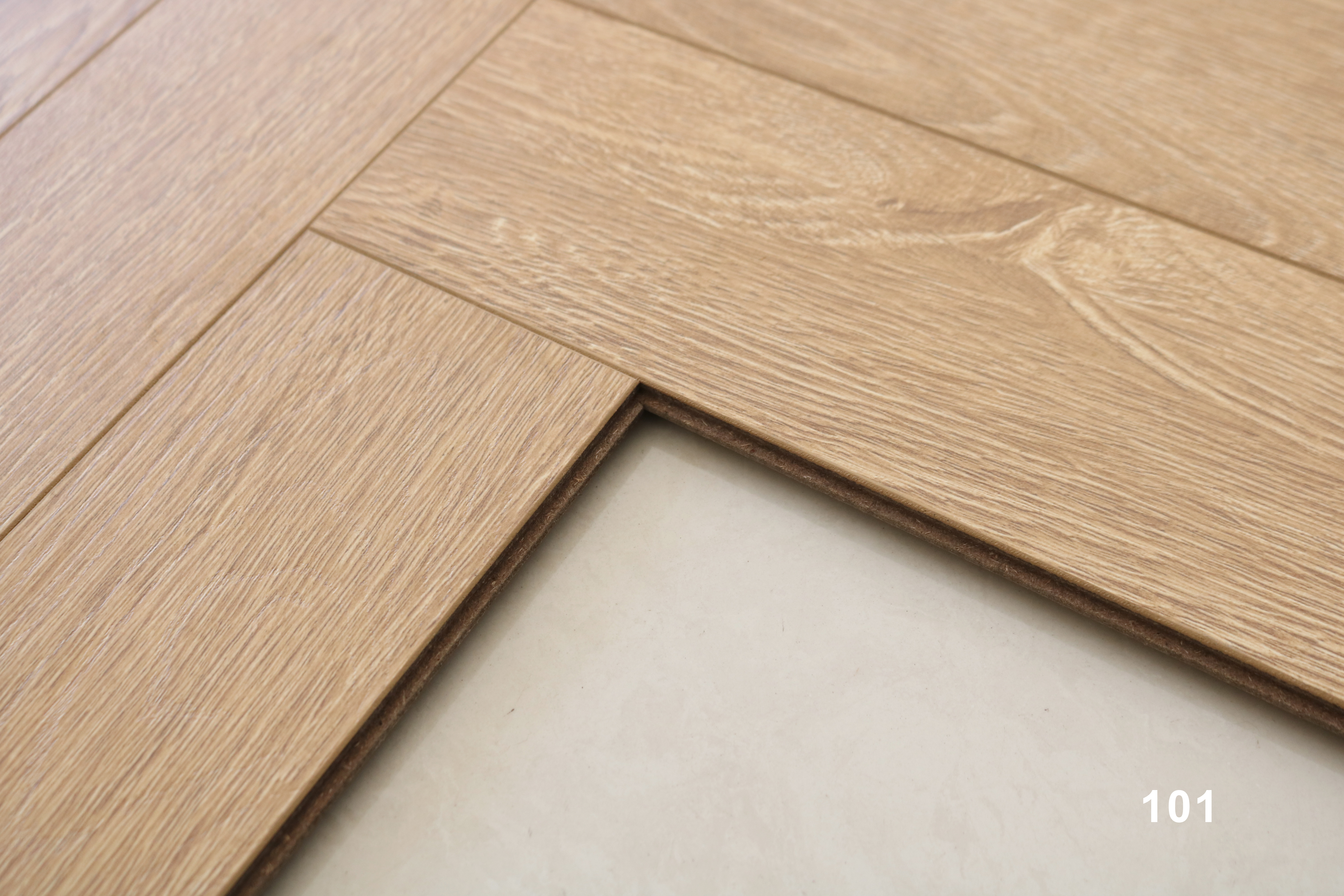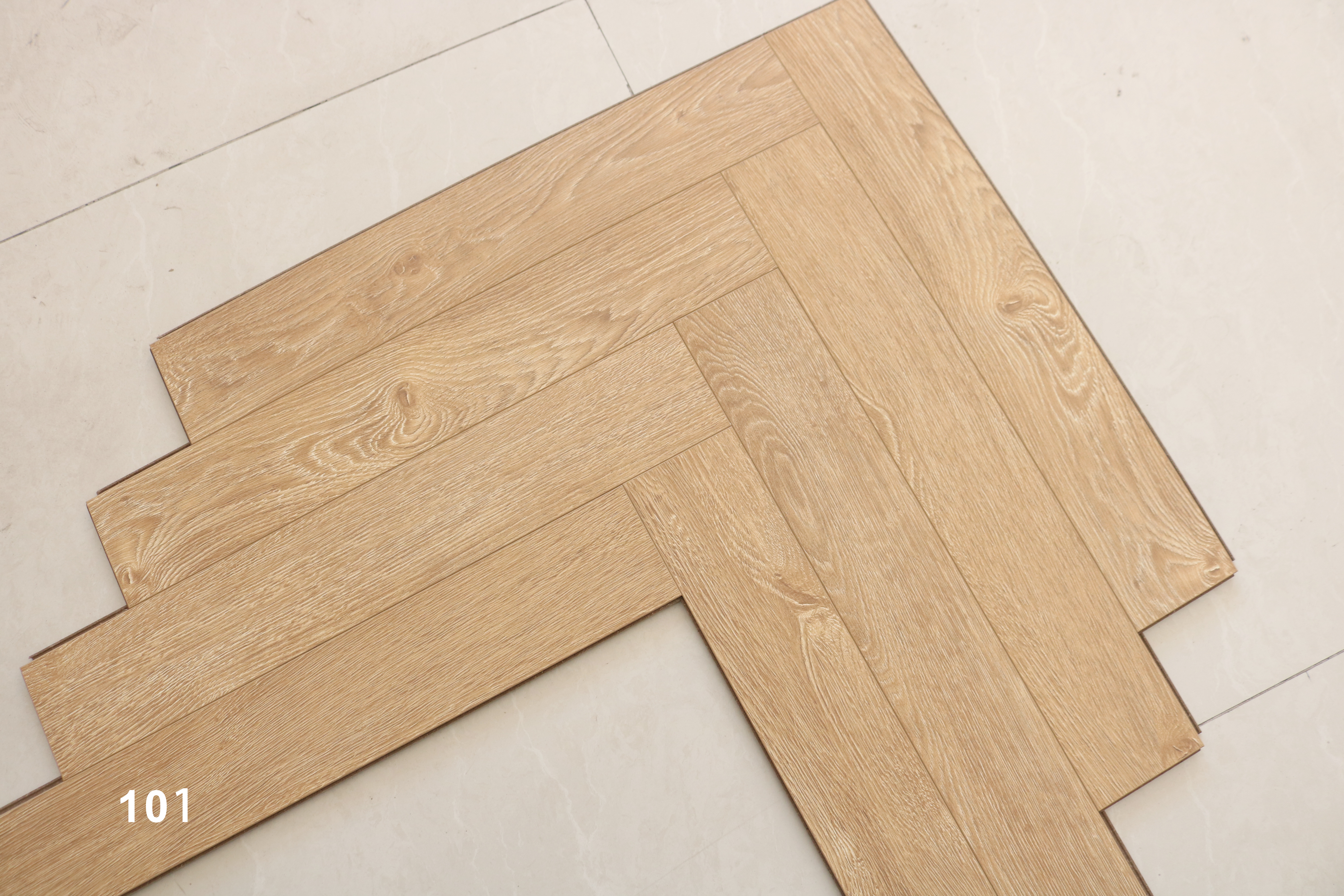 Особенность ламината – дизайн в стиле «елочка», который придает помещению уникальность и выразительность. Также важным преимуществом является наличие 4-сторонней фаски, что придает доскам больше объема и визуально расширяет пространство.