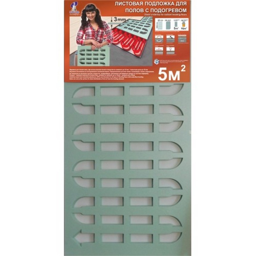 Подложка под напольные покрытия Подложка листовая Solid с вырубкой для теплого пола 3мм (5м2)