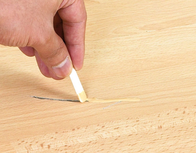 Без заплатки можно заклеить совсем маленькие дырки или порезы: восстановить линолеум поможет такое средство, как шпаклевка. Ее можно приобрести в почти любом строительном магазине, подобрав максимально близкий по цвету состав.